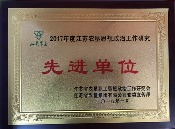 1月14日,在江蘇農墾2017年度政研會年會暨思想政治工作會議上,蘇舜公司榮獲2017年度墾區思想政治工作研究先進單位。