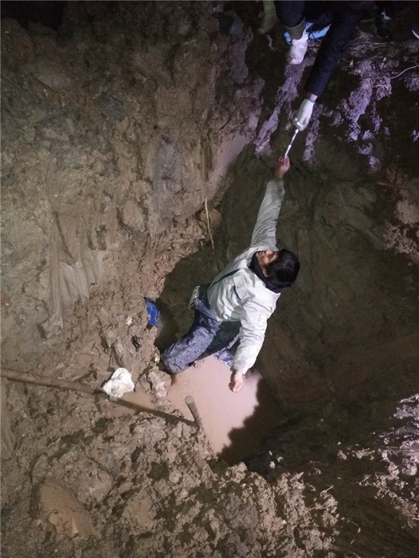 晚上6點(diǎn)30分,水電中心的搶修電話突然響起,位于農(nóng)場(chǎng)的于沈居民點(diǎn)一條供水管道被凍裂,大面積停水。水電中心主任江堯忠第一反應(yīng),“這是一條供水主管網(wǎng),如果搶修不及時(shí),必定會(huì)導(dǎo)致居民生活用水無(wú)法正常使用,必須盡快搶修好。”按照制定的應(yīng)急預(yù)案,帶著搶修工人冒著嚴(yán)寒立即趕往搶修現(xiàn)場(chǎng)。由于地面凍層比較厚,搶修人員先使用破碎錘將地面破開(kāi),把積水排出去,然后使用專(zhuān)用接頭把漏水點(diǎn)封住,在最短時(shí)間內(nèi)對(duì)漏水管道進(jìn)行搶修,站在冰冷的水中凍的直打哆嗦,大家都咬牙堅(jiān)持,經(jīng)過(guò)近3個(gè)小時(shí)的努力搶修,漏水管線得以修復(fù),恢復(fù)了正常供水。