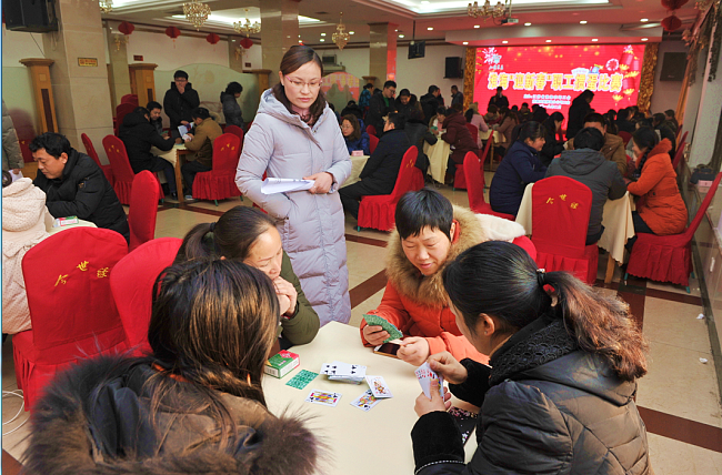 通過“迎新春”摜蛋比賽平臺的參與,有效增進了職工之間的溝通與交流,營造了良好的企業(yè)文化氛圍。圖為淮海公司代表隊在2018“迎新春”摜蛋比賽現(xiàn)場的鏡頭。