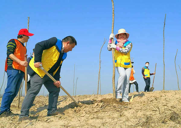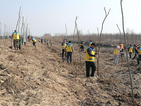 活動中,大家一派熱火朝天的忙碌景象。搬運樹苗,揮鍬鏟土,扶苗填坑,踏土夯苗,三五人一組默契配合,你運苗,我扶苗,他填土,認真地完成著每一道工序,栽下一株株樹苗。活動持續(xù)一個小時,成功栽植3600余棵墨西哥落羽杉,取得了良好的成效。放眼望去,連片的樹苗錯落有致,在春風(fēng)的吹拂下煥發(fā)出盎然生機。此次活動的圓滿完成,為改善生態(tài)環(huán)境、助推綠色發(fā)展揮鋤添綠,吹響了全場大綠化攻堅戰(zhàn)號角。