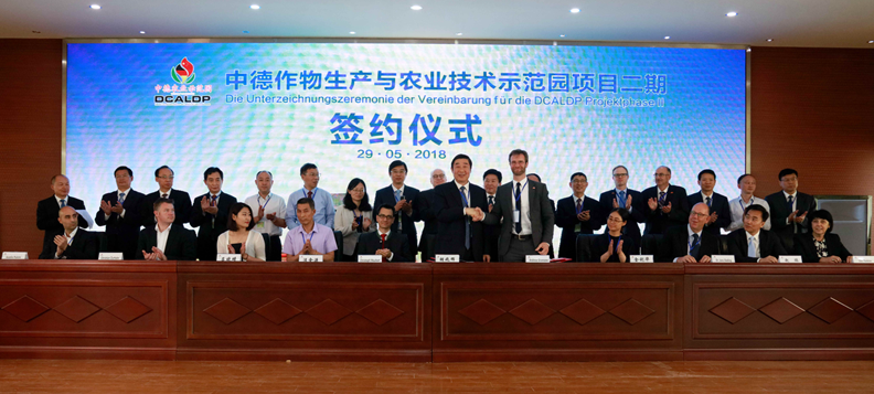 5月29日,中德作物生產與農業技術示范園第四屆“田間日”活動暨項目二期簽約儀式在蘇墾農發黃海分公司舉行。集團公司總經理、蘇墾農發股份公司董事長胡兆輝出席并代表蘇墾農發股份公司與與德國GFA咨詢集團有限公司項目經理安德列斯•伽木措先生及德國9家合作企業代表簽約。集團公司紀委書記章朝陽出席并觀摩田間活動。集團公司黨委委員、蘇墾農發股份公司總裁蘇志富致辭。德國聯邦食品與農業部國際合作與世界營養司副司長弗里德里希•瓦克行先生、中國農業農村部國際合作司歐洲處副處長劉江女士分別講話。中德示范園主任王亦勤主持并與示范園德方負責人托馬斯•伊利斯分別從中德雙方不同的角度做一期成果匯報與二期項目規劃展望黃海農場有限公司董事長、總經理單祥忠等出席會議。