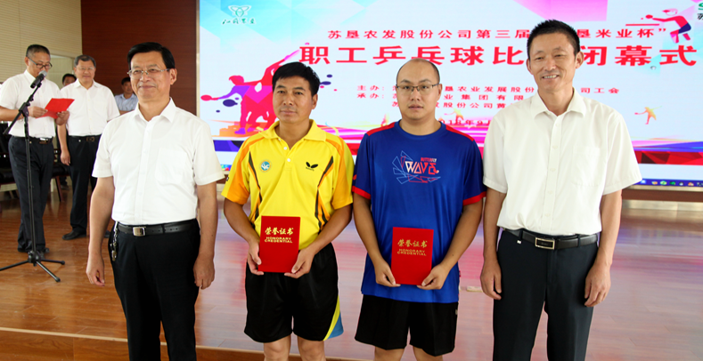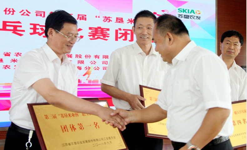 此次比賽共決出團(tuán)體和男單兩個項目的前六名和十二強(qiáng)。經(jīng)過兩天緊張激烈的比賽, 新洋分公司代表隊脫穎而出,榮獲團(tuán)體第一名,第二至第六名的代表隊分別為:黃海分公司、蘇墾米業(yè)、東辛分公司、三河分公司、白馬湖分公司。新洋分公司的王光軼榮獲男子單打第一名,三河分公司項永寶、新曹分公司顧文才分獲二、三名。新洋分公司、黃海分公司、蘇墾米業(yè)、東辛分公司獲得賽會組織獎;南通分公司榮獲精神文明獎。