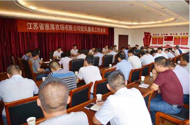 9月21日下午,淮海農(nóng)場(chǎng)有限公司在機(jī)關(guān)五樓會(huì)議室召開(kāi)黨風(fēng)廉政工作會(huì)議,農(nóng)場(chǎng)公司黨委副書記,董事長(zhǎng)、總經(jīng)理單祥忠主持會(huì)議并提要求,在場(chǎng)的淮海領(lǐng)導(dǎo)王燦明、孫司正、陳海軍、孫國(guó)祥出席會(huì)議,農(nóng)場(chǎng)和分公司機(jī)關(guān)及基層單位科級(jí)助理以上人員、駐場(chǎng)單位負(fù)責(zé)人等50多人參加了會(huì)議。