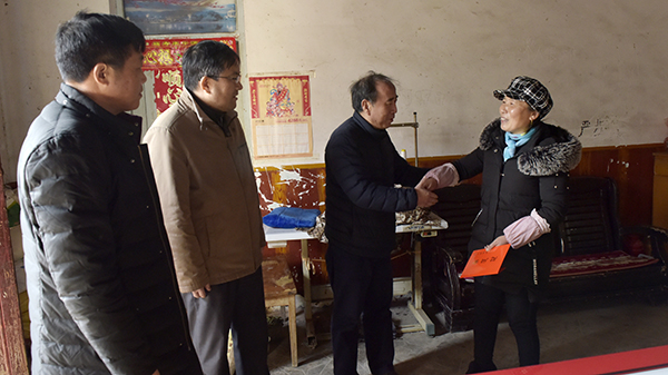 前進居委會5組居民王春梅因患宮頸癌需要治療,丈夫也有肝病長期服藥,兒子尚在讀大專,家庭生活一時非常困難。曹海一行在向她家送上春節(jié)慰問金和慰問品的基礎(chǔ)上,還親切地拉著王春梅的手,仔細(xì)詢問她家的生產(chǎn)生活情況和她本人的身體及治療情況,鼓勵她保持樂觀心態(tài)、樹立生活信心,祝愿她家在各級組織的關(guān)心幫助下,早日戰(zhàn)勝病魔、擺脫貧困,共享美好生活。