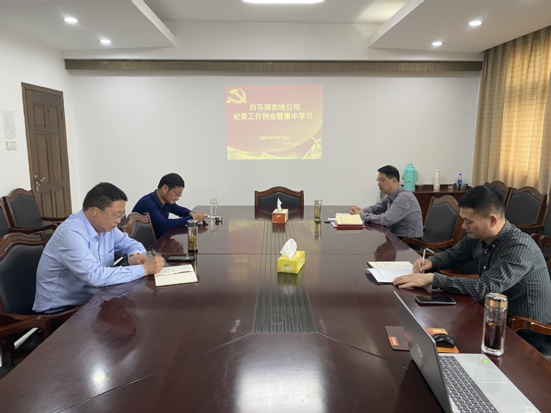 512日下午,白馬湖農場公司紀委書記韓躍武召集全體委員召開集中學習5月份例會,認真學習習近平總書記重要講話,及時傳達集團紀委57日召開的連云港淮安片紀檢工作座談會精神和相關文件,研究布置近期主要工作