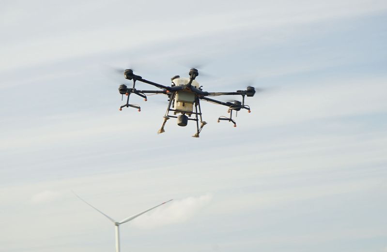 在2大隊河北的水稻田上空,一架無人機在噴灑農藥,只見噴灑農藥噴噴停停,一點都不連貫,我好生納悶,是不是無人機出故障了。向操縱無人機的師傅一詢問,我恍然大悟,我這是少見多怪啊,不是無人機出故障,而是植保無人機輸入了事先由測繪巡田無人機采用多光譜技術拍攝下的雜草分布圖,植保無人機根據雜草分布圖精準點灑農藥,所以就出現了噴灑農藥噴噴停停的情況。師傅還告訴我,因為精準施藥,這塊20多畝的稻田,只用了8畝的藥量,節約農藥五分之三,大大降低了施藥成本。
