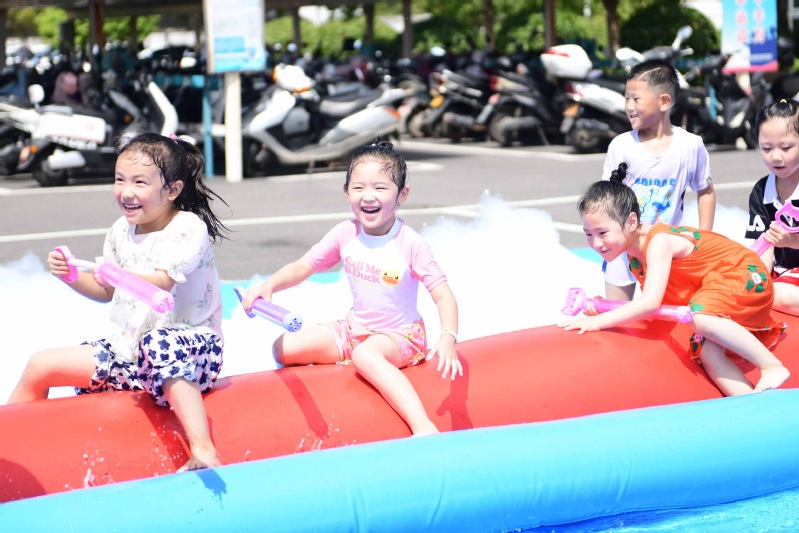 夏末秋初,秋老虎的威力不容小覷。結合連云港海濱城市特點,公司準備了消暑降溫的泡泡大作戰游戲活動。在一片蔚藍中,飛揚的泡沫與激起的水花見證了孩子們的快樂。