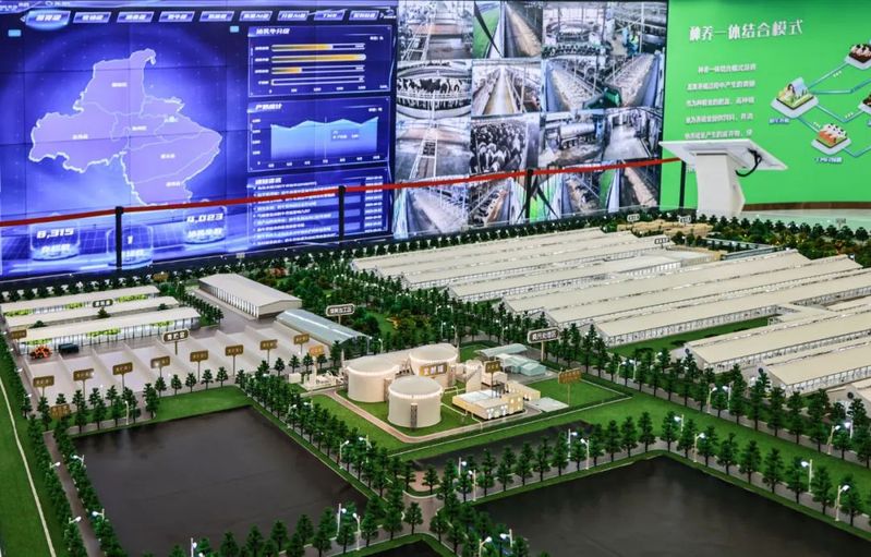 生態(tài)化發(fā)展加速轉(zhuǎn)型。牧場智慧生態(tài)系統(tǒng)的污水循環(huán)管理設備包含牧場污水管路3D圖與污水監(jiān)測點位信息,實時監(jiān)測牧場污水指標,并將數(shù)據(jù)同步上傳至環(huán)保部門,確保牧場水質(zhì)監(jiān)管到位。沼氣發(fā)電系統(tǒng)將標準化工藝處理糞污產(chǎn)生的沼氣用于發(fā)電,沼液利用后的沼渣作為牛床墊料的生產(chǎn)原料,不僅成本低,還有效降低了養(yǎng)殖風險。同時在場區(qū)配備廢氣檢測設備監(jiān)測養(yǎng)殖氣體環(huán)境,配備消防監(jiān)控設備監(jiān)測飼草區(qū)與沼氣發(fā)電區(qū)域煙火狀況。智能生態(tài)系統(tǒng)采取糞污固體發(fā)酵、沼氣烘干回床、沼液還田方式,實現(xiàn)“變廢為寶”。對牧場糞污發(fā)酵后的液位進行采集,經(jīng)過無害化處理后的沼液通過預設專用管道,在卷盤式噴灌機的運轉(zhuǎn)下自動噴灑在專屬消納用地的田間作物上,形成種養(yǎng)一體循環(huán),有效提高了糞污綜合利用水平。