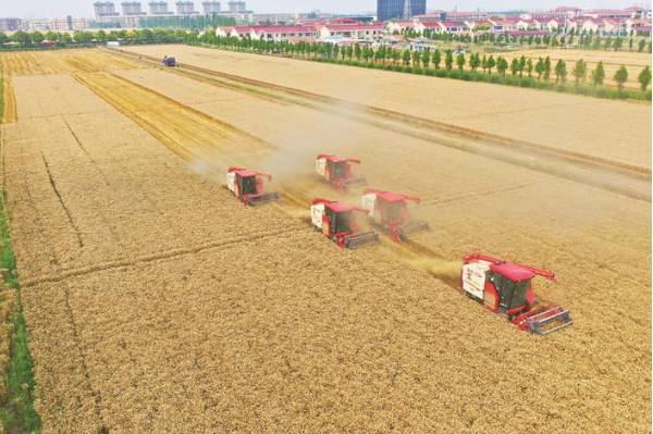 24日,隨著5臺(tái)收割機(jī)在田間來回穿梭,江心沙農(nóng)場本部小麥正式開鐮收割,吹響“本部+外拓+全托管”3萬余畝夏糧收割會(huì)戰(zhàn)集結(jié)號(hào)。全力以赴趕進(jìn)度,在確保顆粒歸倉的同時(shí),為水稻移栽、夏玉米播種等騰出空間、搶出時(shí)間,實(shí)現(xiàn)高效騰茬和收、種、管無縫銜接。