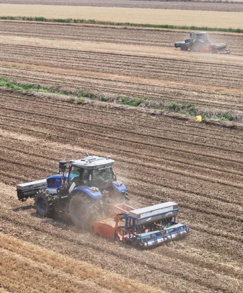 9機能一體型稲麥播種技術(shù)は2017年に開発に成功、試験栽培を行なった後、モデル栽培の普及と機械の改良が続いている。現(xiàn)在、江蘇、安徽、河南、山東、內(nèi)モンゴル、新疆東北部など各省?自治區(qū)の農(nóng)地20萬ムー(約1萬3330ヘクタール)以上でモデル栽培が行われている。