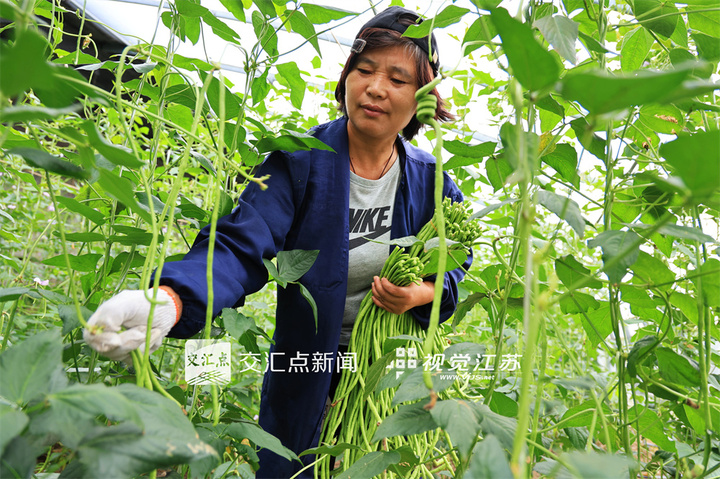 9月17日,連云港市海州區(qū)的江蘇農(nóng)墾崗埠農(nóng)場(chǎng),種植戶在溫室大棚里采收成熟的豇豆,準(zhǔn)備供應(yīng)市場(chǎng)銷售。徐衛(wèi) 攝 視覺江蘇網(wǎng)供圖