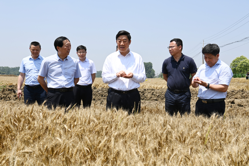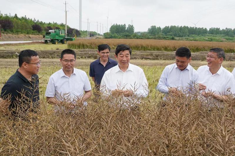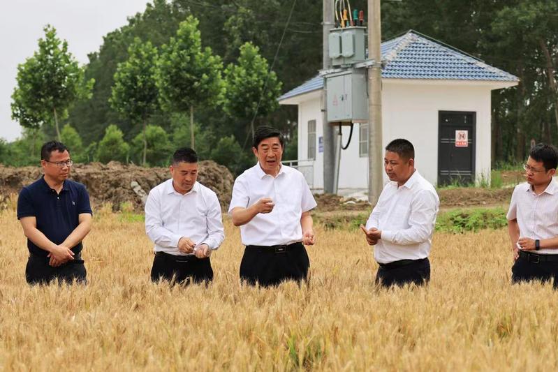 6月1日下午,集團公司黨委副書記、總經理胡兆輝到新曹調研指導“三夏”工作和農場公司產業發展。胡兆輝先后察看了蘇墾農發新曹分公司油菜收割現場、小麥收割現場、水稻秧池、耕整打作現場、糧食烘干線和晾曬場、高標準農田建設項目區,以及農場公司原絲綢廠廠房、日本矮麥冬套種基地,認真聽取有關人員的情況介紹,與一線工作人員親切交談,詳細了解蘇墾農發新曹分公司“三夏”工作進展和農場公司產業發展情況,對新曹“同舉一面旗、共下一盤棋、全力戰三夏”的做法表示肯定,對新曹前段時間大力支持“淮海啤麥會戰”給予贊揚,對新曹一班人團結奮斗、激情創業的氛圍表示贊賞。他指出,今年“三夏”生產形勢十分嚴峻,新曹作為墾區大場之一,要牢記“國之大者”,強化責任擔當,全力做好“三夏”各項工作,為墾區“三夏”全勝作出更大貢獻。他要求,要強化防災抗災減災意識,圍繞“五不”和“五確?!蹦繕?,立足于搶,著眼于快,抓住當前晴好天氣,保種子、保原糧、保栽插進度,把豐收在望變成豐收到手,一著不讓同步打牢秋超增收基礎;要樹牢墾區一盤棋思想,針對可能出現的惡劣天氣,提前做好“南機北援”準備工作,全力支援兄弟單位“三夏”搶收搶種。他強調,開展主題教