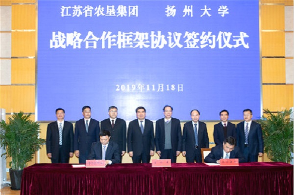 11月18日上午,江蘇農(nóng)墾與揚(yáng)州大學(xué)戰(zhàn)略合作框架協(xié)議簽約儀式在揚(yáng)大荷花池校區(qū)舉行。集團(tuán)公司黨委書(shū)記、董事長(zhǎng)魏紅軍、揚(yáng)州大學(xué)黨委書(shū)記姚冠新出席儀式并講話,揚(yáng)州大學(xué)校長(zhǎng)焦新安主持簽約。集團(tuán)公司副總經(jīng)理
