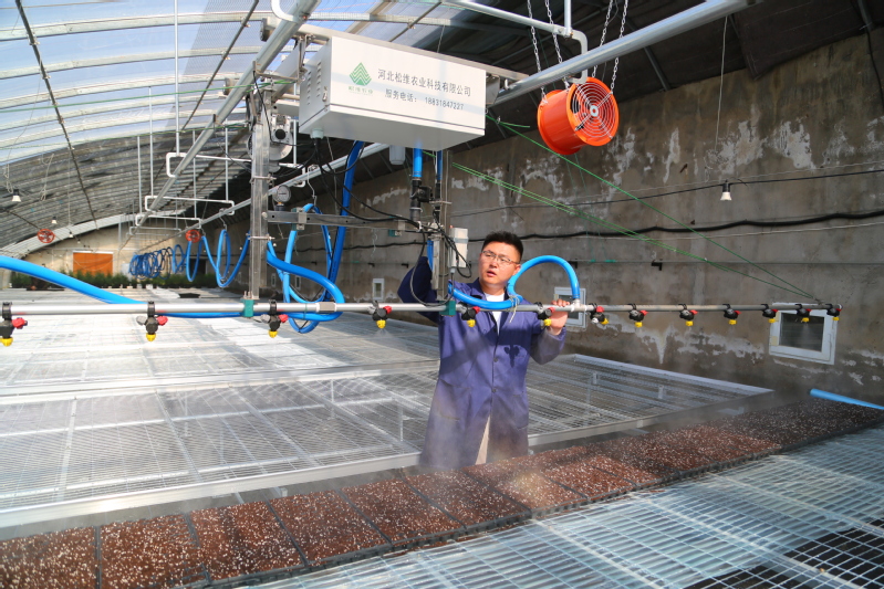 5月20日,崗埠農(nóng)場高效農(nóng)業(yè)示范園內(nèi),新改造的科技育苗大棚迎來首次育苗工作,工作人員在大棚里進行剪枝、培土、擺盤、扦插、噴淋等作業(yè)。據(jù)悉,育苗大棚引進物聯(lián)網(wǎng)智能控制系統(tǒng),實現(xiàn)對大棚內(nèi)溫、光、水、肥、空氣等環(huán)境因素的全面調(diào)節(jié)和優(yōu)化,有效提高育苗成活率,提升生產(chǎn)效率。