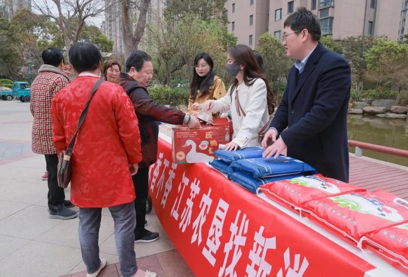 3月28日下午,射陽縣城東都天潤小區內,新洋農場美爾姿營銷團隊舉辦的蘇墾農副產品社區地推活動如火如荼開展,首場營收超3000元。