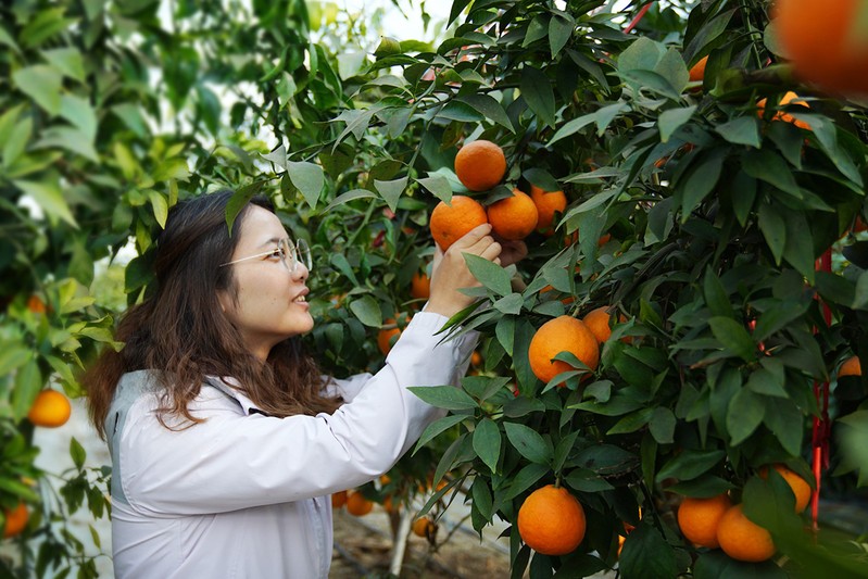 初冬時節,弶港農場有機農莊連棟大棚里暖意融融,一個個果凍橙掩映在綠葉之間,散發出淡淡的清香,透露著它的甜蜜“誘惑”。據農莊工作人員介紹,“紅美人”果凍橙被稱為橘子界的“皇后”,是柑橘的一種,由橘、橙、柚雜交而成,兼具著橙子的多汁、柚子的果肉飽滿以及橘子的艷麗,是雜交的新品種而深受消費者歡迎。農場有機農莊自從開通網上社區銷售平臺以來,線上流量、銷售量倍增。圖為工作人員正采摘成熟的“紅美人”果凍橙,通過京東快遞打包銷往蘇南客戶。