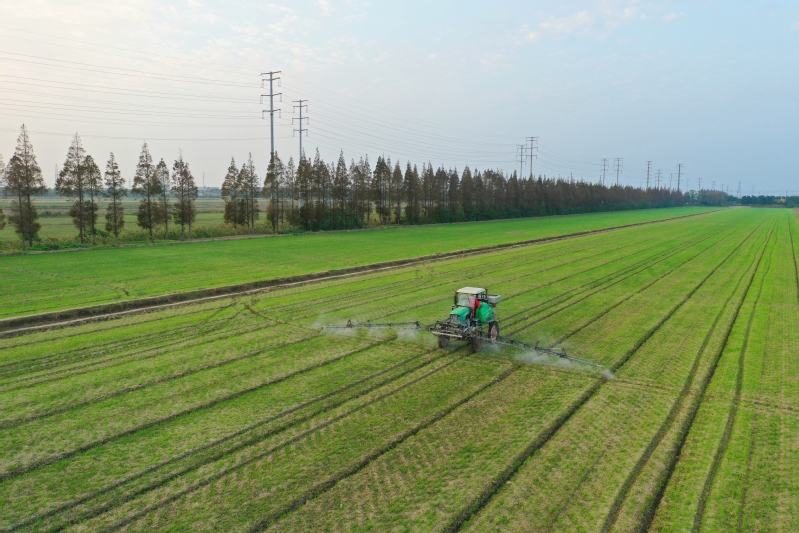 江心沙本部第二生產區農業生產管理人員立足“抓早抓小”方針,駕駛植保機對麥田進行冬后首次藥肥一體化作業,化控除草與促苗穩健生長兩不誤。