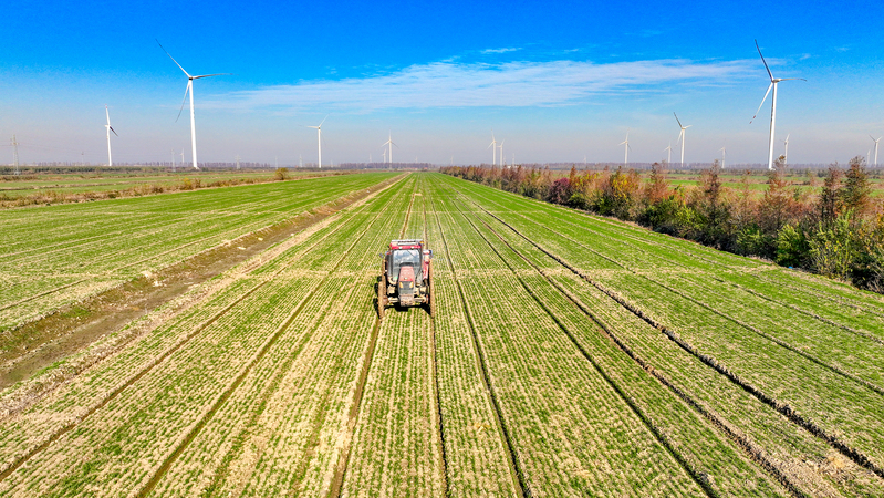 11月26日傍晚,在新洋農場高標準農田里,一片片嫩綠的麥苗鋪滿田間,點綴著廣闊的田野。在夕陽的照耀下,滿載希望的農田成為初冬一道靚麗的風景。