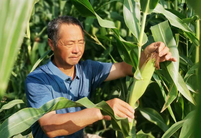 9月6日,蘇墾農發(fā)東辛分公司玉米大豆帶狀復合種植田里,農技人員正在查看玉米長勢,豐收在望。