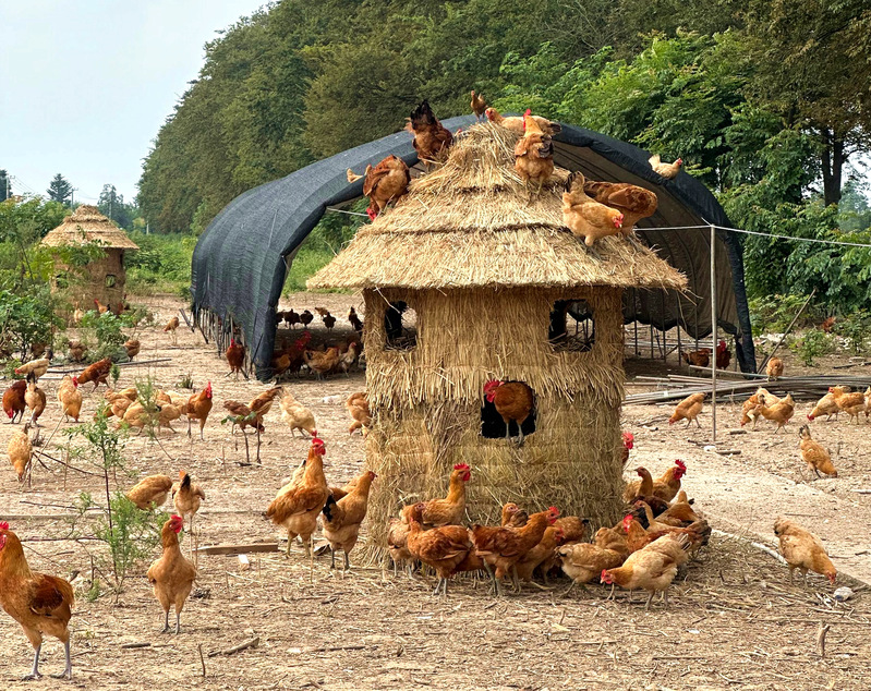 處暑剛過,白露將至,天氣逐漸轉涼。為給三分場杜仲林下生態(tài)養(yǎng)殖場的草雞們創(chuàng)造一個溫暖、舒適的棲息環(huán)境,日前,寶應湖農場生態(tài)農莊結合家禽養(yǎng)殖時間、空間、健康需求,集中采購6個草編雞棚,進一步增添了農莊的生態(tài)韻味。“我們選擇草棚式雞窩主要是順應草雞生活習性,給雞群營造生態(tài)環(huán)境,利用農場生態(tài)優(yōu)勢,為游客們帶來沉浸式生態(tài)旅游體驗。”生態(tài)農莊負責人一邊查看雞棚質量,一邊介紹道。“雞棚用料厚實,為降溫天氣雞群安全提供保障,敞開式雞窩供草雞休息、產蛋,有高有低的空間設計幫助雞群鍛煉體力,能增強雞肉緊實度。”“咯咯咯、嘰嘰嘰……”清晨,一陣陣歡快的雞鳴聲清脆悅耳、此起彼伏,杜仲林下生態(tài)養(yǎng)殖場一下子變得熱鬧起來。只見,草雞們三五成群,或覓食、或散步、或撲棱著翅膀從平地“飛”上枝頭。新雞棚里,剛剛產出的雞蛋粉紅透亮、留有余溫,閉目養(yǎng)神的雞仔還在享受“新家”的舒適,更有一群精力旺盛的“探險家”草雞們或是鉆進草棚雞窩試試高度,或是登上棚頂“一比高下”。近年來,寶應湖農場生態(tài)農莊確定“生態(tài)、散養(yǎng)、健康、優(yōu)質”發(fā)展思路,全力推進特色養(yǎng)殖產業(yè)不斷走新走實。一是在選址上依托生態(tài)環(huán)境美。將1500棵珍貴杜仲樹納入養(yǎng)殖場范