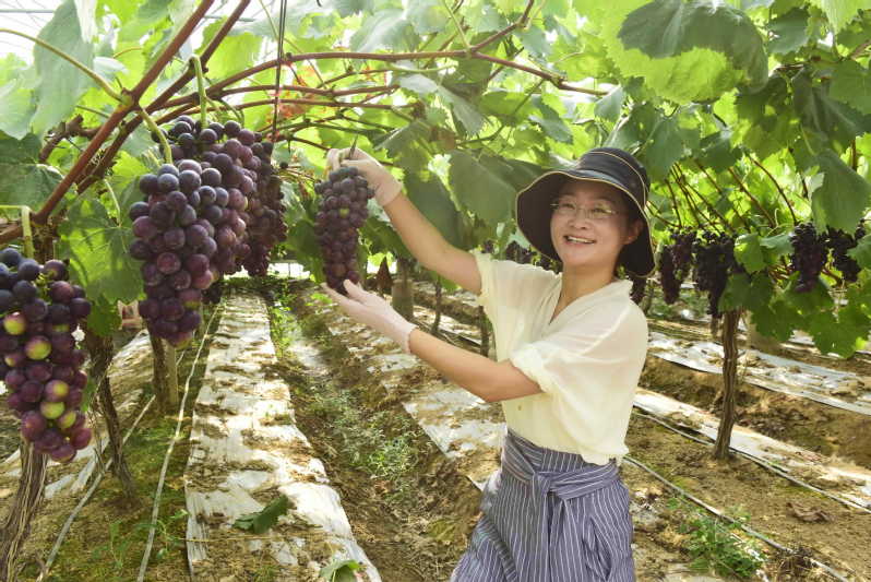 8月3日,在射陽縣淮海農(nóng)場高效園區(qū)5畝連棟高架大棚葡萄園內(nèi),碩大成串的葡萄綴滿枝頭,就連空氣中也彌漫著沁人心脾、清新的水果味,經(jīng)過園區(qū)工人的精心培育,一串串綠色或黑色晶瑩的葡萄掛在藤架上,令人垂涎欲滴。入口品嘗,個個飽滿多汁,甜而不膩。慕名來采摘觀光的游客,在葡萄園內(nèi)一邊抬頭觀賞、一邊低頭采摘(如圖),幸福的滋味綻放在臉龐。在葡萄園里,剛剛用微信掃碼后的淮海居民吉長明興奮地說:“我每年都要來到園區(qū)買幾箱葡萄,這里的葡萄不僅口感好,果也大,讓城里的人也來嘗嘗我們農(nóng)場獨(dú)特的‘土特產(chǎn)’。”據(jù)他講,每年城里的親朋好友每到這個季節(jié),就要托他買幾箱葡萄帶到城里去。據(jù)了解,園內(nèi)種植品種“夏黑”和“陽光玫瑰”等葡萄品種,畝產(chǎn)量可達(dá)4000斤上下。特別是其統(tǒng)一施用農(nóng)家肥、無公害防蟲防病、反光膜覆蓋、科學(xué)滴灌、疏果等措施,輔助于智能化的通風(fēng)調(diào)溫、噴淋調(diào)水和調(diào)節(jié)光照設(shè)施的開展,合理調(diào)節(jié)土壤水分,降低田間溫、濕度,也減輕各類病蟲害的侵襲,讓葡萄按規(guī)定設(shè)計的要求進(jìn)行掛果,確保種出安全、優(yōu)質(zhì)的葡萄提供給消費(fèi)者。“我們的葡萄每斤售價在8元/斤,一畝地毛收入可達(dá)20000元。”園區(qū)負(fù)責(zé)人解進(jìn)空說,“是良好的品質(zhì)和采摘