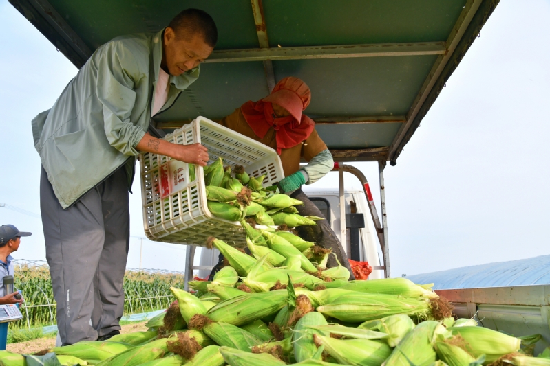 近日,淮海農場的鮮食玉米迎來開摘季。走進玉米種植園區,飽滿的玉米穗在翠綠的莖葉間若隱若現,工人們正忙著采摘、打包、稱重、發貨。