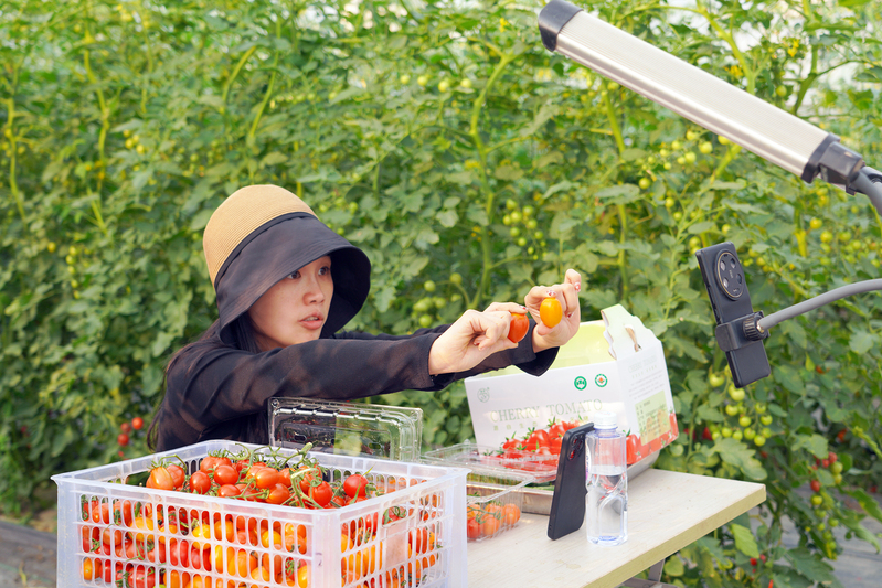 6月23日清晨,弶港農場有機農莊番茄種植大棚內,工作人員借助抖音直播平臺進行產品宣傳、推介,吸引了大批消費者的目光。目前,“弶農”小番茄銷量已突破2萬斤。